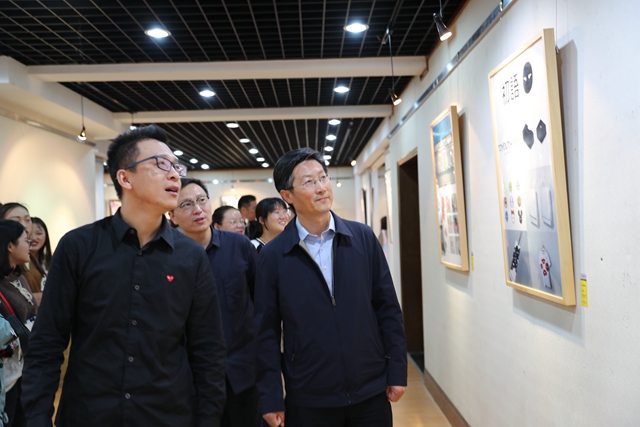 王建、祝兴成仔细观看了展览,对本次活动的举办表示赞许,对美术学院领导及老师为近年来美术学院的专业建设、教学实践作出的贡献给予了肯定,并对美术学院未来的发展提出了新要求,给出了新建议。