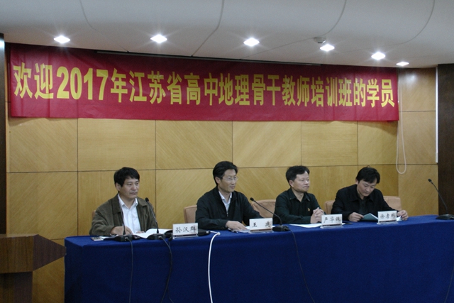 10月17日下午,2017年江苏省高中地理骨干教师提高培训班在我校开班。校长王建,省干训、师训中心常务副主任严华银,城市与资源环境学院院长孙汉群及党总支书记、副院长徐孝彬等出席开班仪式。孙汉群主持仪式。