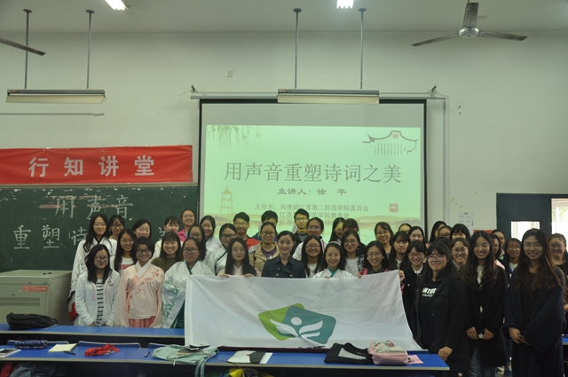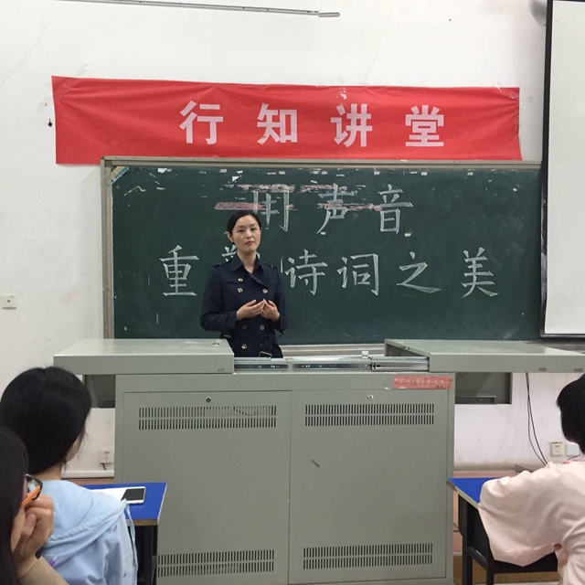 10月25日下午,由校团委、教务处、江苏省中华诗学研究会主办,江苏诗歌教育研究中心承办,百草诗社、校学生会协办的行知讲堂系列讲座之一——用声音重塑诗词之美在浦口校区举行。江苏广电总台教育频道资深节目主持人、国学推广大使,曾荣获中国教育电视台主持人金奖的徐平老师应邀主讲。校团委副书记刘姝出席活动。