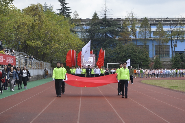 开幕式上,在昂扬雄浑的运动员进行曲中,五星红旗庄严出场,校旗队、校徽队、红旗队、鲜花队依次亮相,各二级学院运动员方队精神昂扬、步伐整齐、口号响亮地走过主席台,他们进行了各具特色的表演,充分展示出我校学子积极向上、团结奋进的精神面貌。