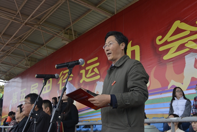 王建致开幕词。他代表学校党委、行政向本次运动会的开幕致以热烈的祝贺,对参与运动会筹备工作的老师、同学表示衷心感谢。王建说,体育是一个国家、一个民族强盛的重要标志。国家“十三五”规划中,明确提出要推进“健康中国”建设,并对“发展体育事业,推广全民健身,增强人民体质”提出了新的更高的要求。大学作为培养德智体美全面发展的专门人才的机构,离开体育是万万不能的。近年来,国家已经把大学生体质检测结果作为评价学校办学水平以及学生能否毕业的标准。希望运动会的开展能够激发广大同学锻炼身体、强健体魄的热情,进一步推动学校群众性体育活动的发展,提升学校广大师生的身心素质,使二师人以更加昂扬向上的精神风貌迎接事业和生活的挑战。让我们共同努力,把这次运动会办成一个精神文明的盛会、高水平体育竞技的盛会,一个引导与调动广大师生踊跃参加体育锻炼的动员会,一个庄严宣誓“无体育、不二师”、“每天锻炼一小时,快乐学习工作每一年,健康生活一辈子”的誓师大会。