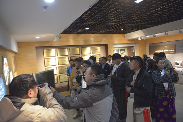 仪式结束后,与会人员进行了合影留念,拉萨师专见习师生参观了我校校史馆和生命科学与化学化工学院的鸟类标本馆。