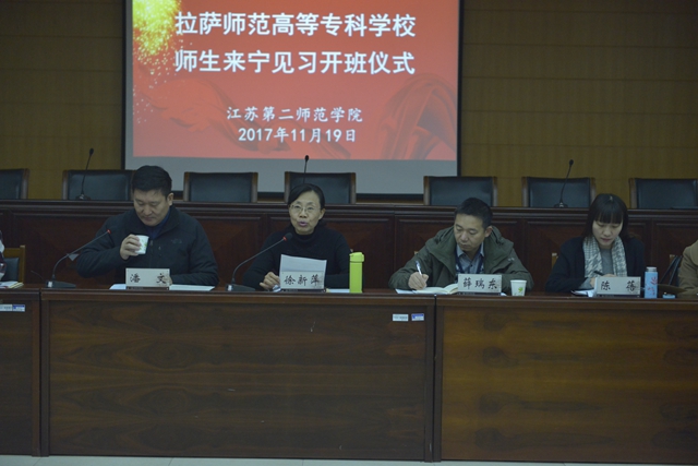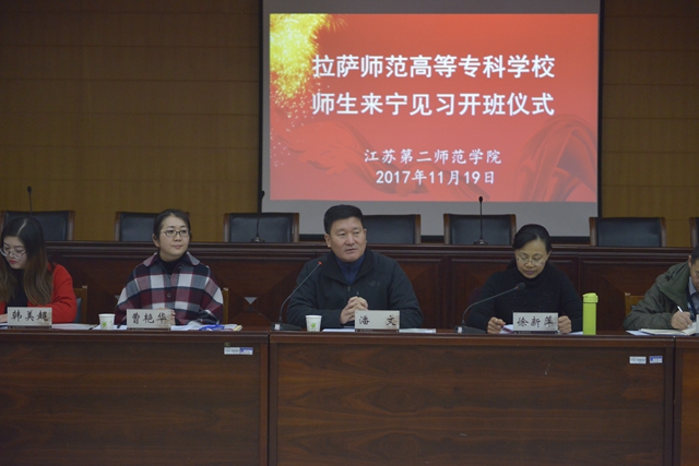 11月19日上午,我校在草场门校区举办2017年拉萨师范高等专科学校师生来宁见习开班仪式,副校长潘文出席会议。拉萨师范高等专科学校领队教师曹艳华、韩美超和28名见习学生,我校相关学院、教师教学发展中心、教务处负责人及相关人员参加开班仪式,仪式由教务处处长徐新萍主持。