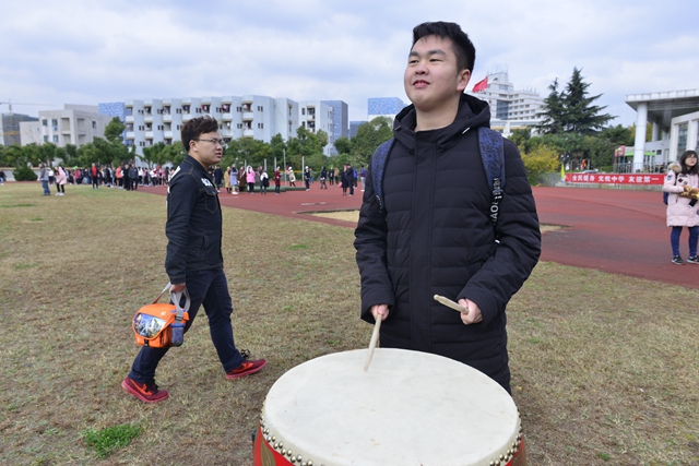 我用击鼓为运动员加油。我觉得这份工作很棒,既发挥了自己专长为运动员加了油,又能让自己融入集体活动并锻炼自己。