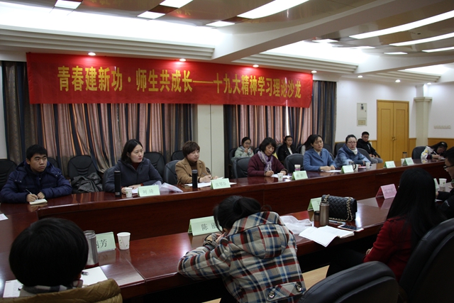 本次学习沙龙以主旨发言、分享交流的形式展开。教师代表从习近平新时代中国特色社会主义思想、青年人的理想与信念等方面解读十九大报告;学生代表围绕报告,谈感悟、谈体会、谈榜样、谈梦想。现场学习氛围浓厚,师生交流融洽。