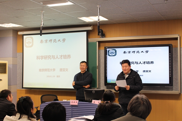 为帮助理科青年教师更好地处理教学与科研的关系,助力他们成长为一名优秀的高校教师,1月10日,教师教学发展中心组织开展“科学研究与人才培养”主题教学研讨活动,邀请南京师范大学化学与材料科学学院唐亚文教授来校作专题报告。来自生化学院、物电学院、城环学院和数信学院的26名青年教师参加研讨活动。副校长潘文全程参与并主持研讨活动。