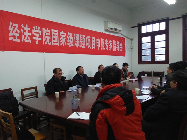 1月18日,经法学院在草场门校区举办2018年度国家级课题项目申报专家指导会。由来自南京大学等四所高校的五位专家组成的专家评审团、申报国家级课题项目的教师参加会议,该院副院长成谢军主持会议。
