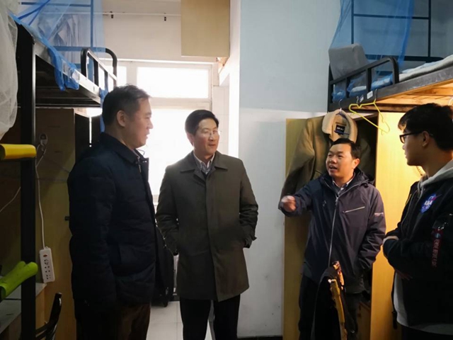 2月25日,党委书记王仁雷、校长王建,校领导刘继红、祝兴成、潘文、姚振标、徐国华、陈金如在有关职能部门负责人陪同下,分赴草场门、浦口和小行三校区,看望各院部教职人员,检查新学期开学准备工作。