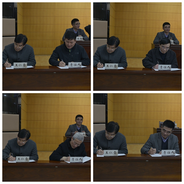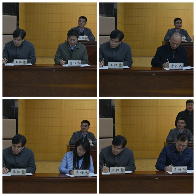 祝兴成代表党委传达有关安全稳定工作会议和文件精神,纪委副书记卜玉平就《党政领导干部党风廉政建设责任书》签订和做好党委党风廉政建设主体责任履责记实工作作说明。王仁雷同领导班子成员分别签订党风廉政建设责任书,班子成员分别代表党委同二级单位党政负责人签订责任书。