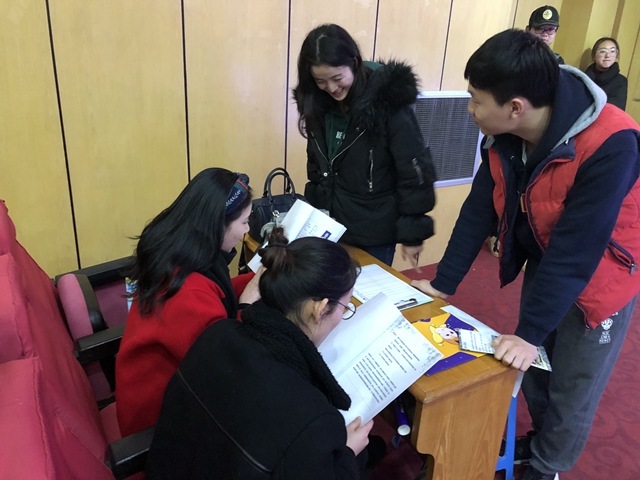 参加此次招聘会的有南京小银星艺术团、江苏省兴化市文正实验学校、南京思格朗文化传播有限公司、弥索艺术培训机构、正人国际艺术教育集团5家用人单位。会上,五家单位均以ppt的形式介绍了各自单位的规章制度、福利待遇、现有产业结构、组织构架、人力资源政策及对应聘者的详细要求等。本次招聘用人单位所需的专业主要围绕声乐、钢琴及各种器乐和舞蹈等方向。毕业班同学们积极踊跃地与用人单位进行了认真的咨询与交流,会场气氛热烈。