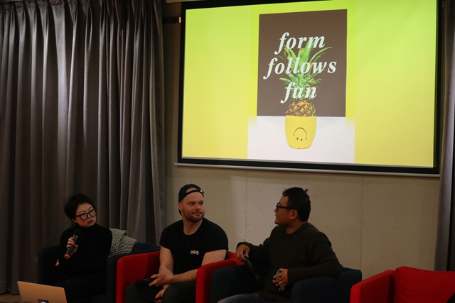 菲利克斯先生围绕“好的设计的10点要求”提出了自己的想法,他认为任何事情都可以复制,好的设计是耐看的,真诚朴实的,是环保生态的,经典是一直存在的。他的人生哲理是:不要为了金钱做设计,要为了快乐幸福做设计。菲利克斯提出“设计存在逻辑和情感中间”,他风趣地说:自己在做与“金钱”和“爱”相关的主题设计时,常带着激情和兴奋的心情去做,并在大量的政治、商业、公益等海报设计中展现着特有的个人风格。菲利克斯先生用生动有趣的PPT向同学们展示他的个人作品,并一一耐心地介绍这些作品背后的故事,分享他在做设计创造过程中的心路历程。他指出,设计师们应尽量在商业和兴趣爱好方面去寻求平衡,并始终带着热情去创作设计作品。