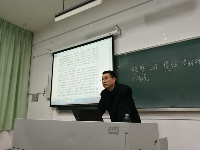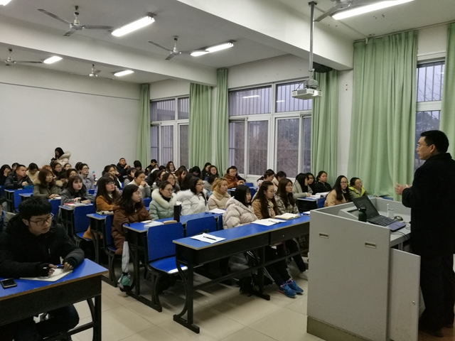 3月20日晚,外国语学院邀请教育科学学院王明宾副教授为2018年度大学生创新训练项目申报的同学们作辅导报告,党总支副书记黄晓波参加并主持辅导报告会。
