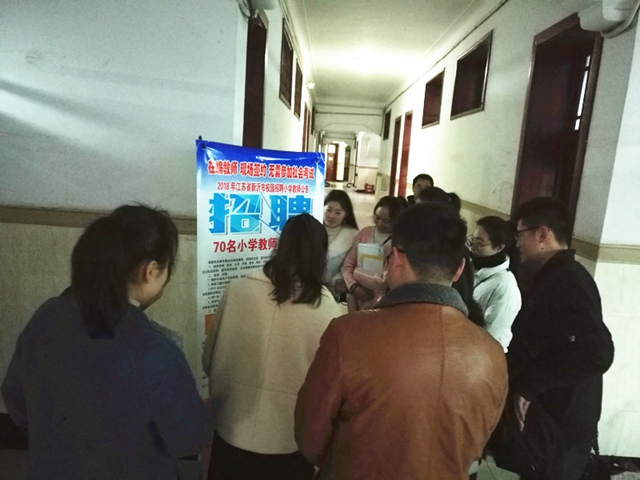 20日下午、21日上午现场接收报名材料,报名现场人数众多,气氛热烈,秩序井然。经第一轮审核,100多名同学通过报名资格审核,进入21日下午的面试。面试采用现场演课的方式,由新沂市30多名专业教师评审团队分学科现场考核,面试结束后当场公布结果。经过激烈角逐,我校最终共有63名毕业生成功签约录入事业编制。
