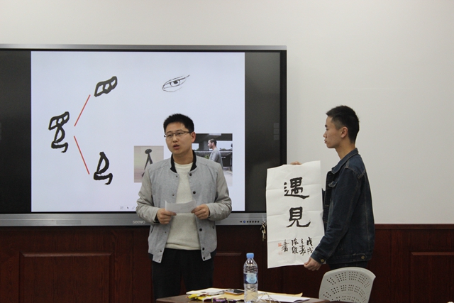 第二部分,学前教育学院的陈维老师通过书法的不同字体向我们展现了中国书法中“遇见”这两个字的博大精深。