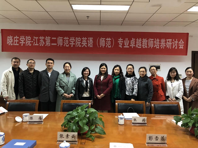 4月4日下午,南京晓庄学院教务处处长张素云、外国语学院院长汪壁辉率外国语学院相关人员来我校,就英语专业卓越教师培养工作进行研讨。副校长潘文,教务处副处长陈蓓,外国语学院党总支书记、副院长张莉,党总支副书记黄晓波,英语专业相关教研室主任和两办主任参加会议。张莉主持会议。