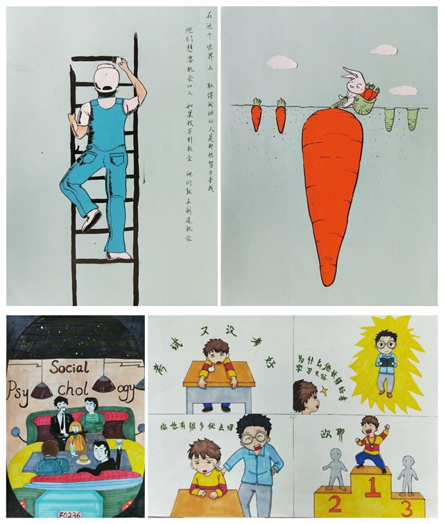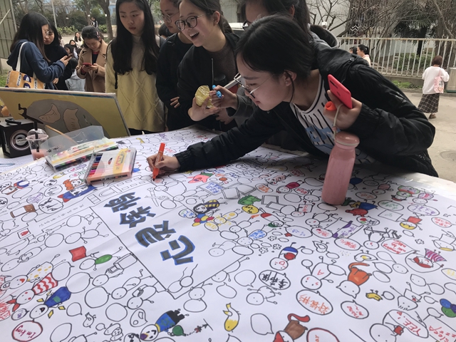 教育周期间,各学院也利用参观调研、团体辅导、心理素质拓展、心理微电影录制、心理漫画绘制、心理健康主题演讲、主题绘画涂鸦、主题征集等形式,引导学生关注自我及身边同学,树立携手互助、共同成长的理念。教育科学学院组织“Hi~你好”系列活动,带领同学们与旧物告别,让旧物和与旧物的故事传递给陌生人开启新的旅程;通过主题绘画拉起朋辈的手。美术学院结合学生专业特点组织师范生参观“陶老师”工作站(南京市中小学生心理援助中心),关注和了解未成年人心理健康问题;开展心理漫画大赛和心理知识连载,提高学生心理健康意识。生化学院“为你打call”320心理健康周系列活动通过“来自美国的明信片”交流分享会、“抖录心声”宿舍温馨故事及照片征集、“青春之舞”圆梦四部曲微电影拍摄等活动表达对身边同学的关爱,倡导大学生勇于追求自己的青春梦想。外国语学院的心理主题英语演讲、经济与法政学院的“123茄子;D”系列活动、物理与电子工程学院的“发现身边最美的她”、马克思主义学院的“多大事呀”3.20趣味心理健康周系列活动等也各具特色,吸引了众多学生参与。