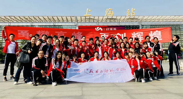 党委书记王仁雷、副校长刘继红以及党办院办、宣传部等相关同志亲赴上海慰问合唱团师生。王仁雷祝贺大家入围国赛并提出热切的期待,他指出:全国大学生艺术展演活动是我国目前规格最高、规模最大、影响最广的艺术盛会,希望大家珍惜此次机会,多多学习,并预祝大家满载而归,取得最好的成绩。当晚,我校合唱团在复旦大学相辉堂唱响《哭泣的草原》和《杨格舞曲》,现场获得了观众热烈的掌声和专家领导的一致好评。展演结束后,江苏省教育厅体卫艺处处长张鲤鲤与学校领导、师生一起合影留念。