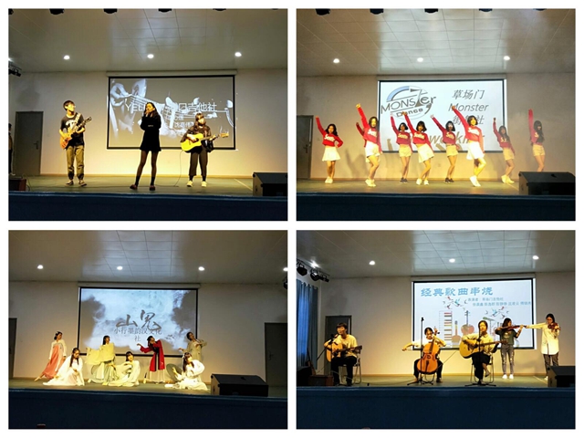 浦口校区的百草诗社、曼妙风雅社、动漫社,草场门校区的街舞社、吉他社,小行校区的天文协会、墨韵社等轮番上台表演。由部队官兵带来的歌曲《平凡之路》和《战狼主题曲》赢得了在场观众的阵阵掌声。94961部队领导对我校社团前来慰问演出表示热烈欢迎和感谢,并充分肯定了我校学生社团的文艺展演水平。演出结束后,部队官兵带领我校学生参观了军队训练场地并详细介绍了各种武器装备。