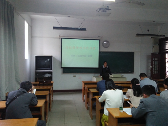 教工党支部书记陈艳作了题为《践行核心价值观,加强教师师德师风建设》的报告,胡婵副教授作了题为《高校教师的当代价值》的讲座。
