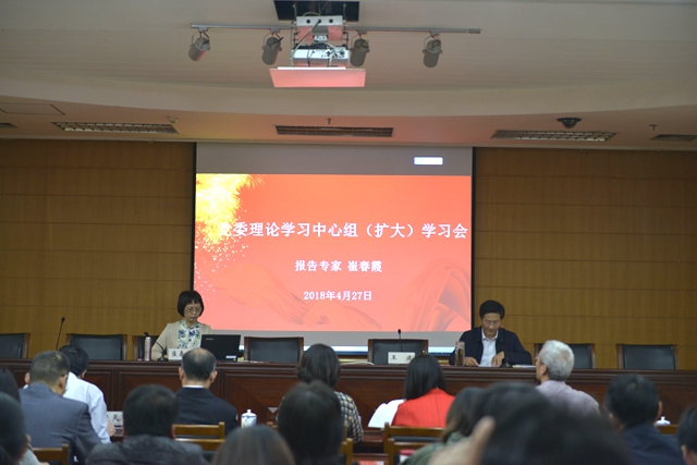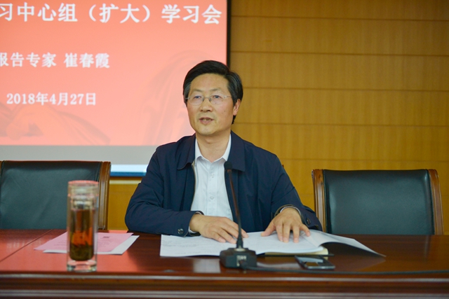 4月28日下午,我院举行党委理论学习中心组(扩大)学习会,专题学习新时代教师队伍建设及教师教育的有关文件。省教育厅师资处处长崔春霞作辅导报告,院领导王建、张勤、王国强、刘继红、王晓天、姚振标,全体中层干部参加学习会,会议由院长王建主持。