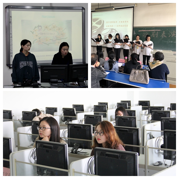 活动期间,外院共举办了网上写作、听力、词汇、读写、语法和笔译6项语言技能竞赛,一方面测试了同学们的专业知识水平,另一方面也促使同学们发现了各自学习过程中的优势和薄弱环节。在此基础上,4月25日下午,外院举行了创新实践类竞赛。产品营销方案设计比赛中,同学们开拓思路,全方位展示自己的产品营销方案;短剧表演比赛中,同学们流利的口语表达、生动的演出赢得在场观众的热烈掌声。课本剧、绘本创编的参赛作品内容多样、形式新颖,充分展示出了外院学生的创新能力和实践能力。