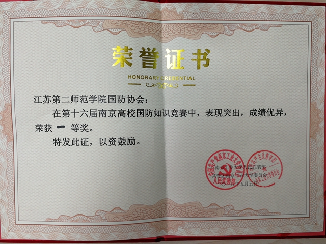 下午,第十六届南京高校国防知识竞赛在南京工业大学举行。我校国防协会的三名选手表现优异,在比赛各个阶段始终沉着冷静、应答如流。最终,我校代表队荣获本次竞赛一等奖。
