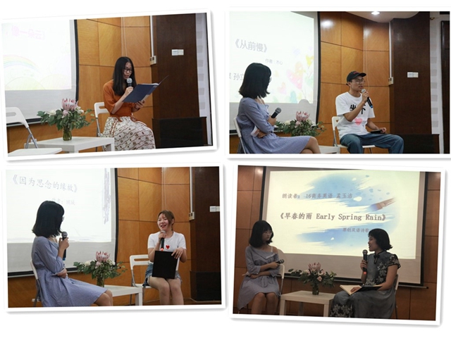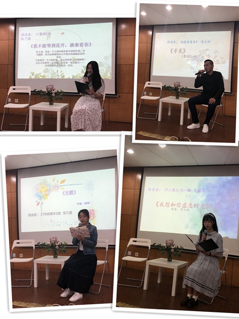本次心理健康教育月的主题是“生命之美,你我共绘”,“为你读诗”活动是系列活动之一。活动前期吸引了全校两百多名同学参与,其中不乏同学们自己创作的中、英文诗作。当晚的活动中,16名同学进行了诗作朗读,分享了个人成长中的心灵历程。刘莹也在活动中朗读了自己喜爱的文学作品,并与同学们亲切地交流互动,共同度过一个美好的夜晚。