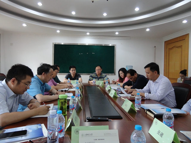 蒋功成一行分别听取了浙江师范大学化学与生命科学学院党委书记徐建鹏和上海师范大学生命与环境科学学院副院长曹建国关于各自学院的发展思路、专业设置、学科建设、师资队伍、学生工作等方面的情况介绍,并就新标准颁布和师范专业认证要求下的培养方案修订和实施细则与对方进行了深入的讨论交流。