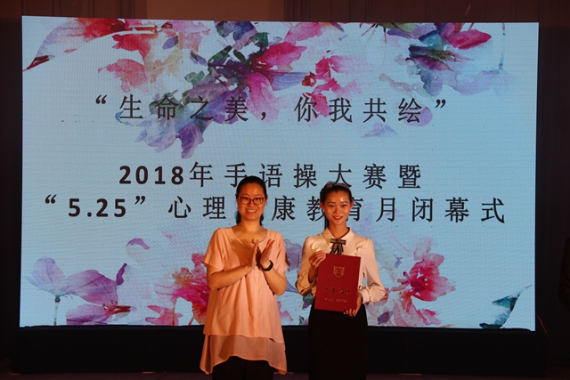此次手语操大赛也是今年“5.25我爱我”心理健康教育月的闭幕式。在此之前,心理健康月已组织了“分享你的仪式感”主题征集、“为你读诗”心理主题朗读、“家有一老家有一小”照片征集、“抖动青春的音符”创意音乐短视频征集、朋辈互助心理团体辅导等一系列主题活动,举办活动旨在引导学生关注自我健康、关注生命之美。