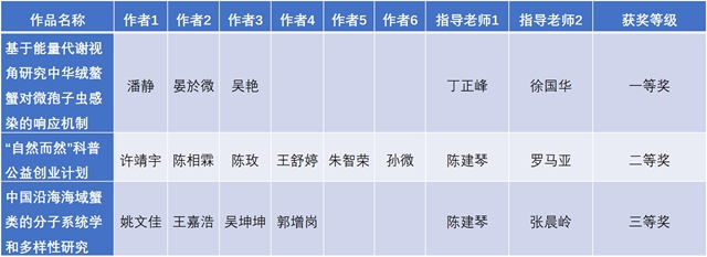 8月7日至9日, 第三届全国大学生生命科学创新创业大赛在徐州举行。我校2014级生物师范专业潘静、2016级生物科学(非师范)专业晏於微、吴艳三位同学在生化学院院长蒋功成、党总支书记陈建琴以及丁正峰老师的带领下参赛,与来自复旦大学、上海交通大学、吉林大学、东北师范大学等著名高校代表队同场竞技,经过资格审查、初赛网评、决赛网评和现场答辩等多轮角逐,最终荣获一等奖。另“‘自然而然’科普公益创业计划”及“中国沿海海域蟹类的分子系统学和多样性研究”分获二等奖和三等奖各一项。