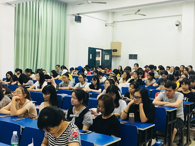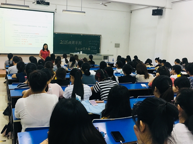 9月4日中午,外国语学院举办2016级学生新学期学业动员大会。16英语专业、商务英语专业135名同学参会。该院院长、党总支书记张莉出席会议并讲话。