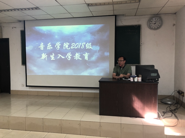 9月9日上午,音乐学院在教2楼101举行2018级新生入学教育大会。会议由院党总支书记蒋向红主持,副院长周振亚、王春燕以及王健、段宝君、韦利军、陈霄、金今等老师和2018级全体新生参加会议。本次会议分三个环节进行。