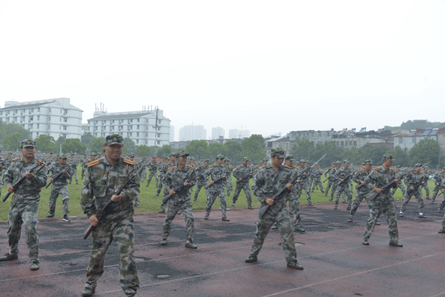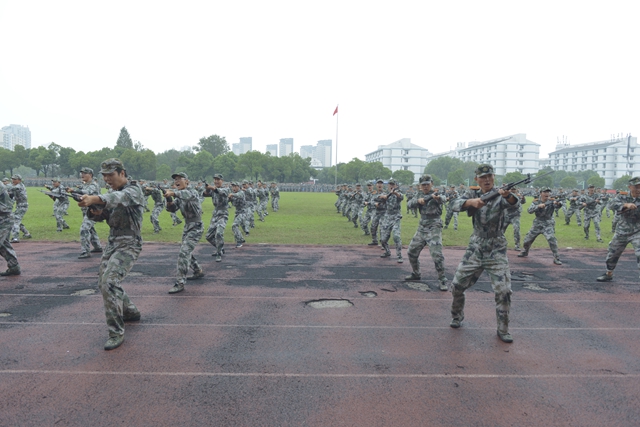 在军训团团旗的引导下,各连组成的方阵依次通过主席台,他们步伐整齐、口号嘹亮,气势如虹、豪情万丈,以最佳的精神面貌展示了本次军训的成果。在为期13天的军训中,他们刻苦训练、勇于争先,展现了我校学子昂扬的斗志和积极向上的精神风貌。接下来进行了军训成果汇报表演。2018级新生们进行了女子军体拳、女子匕首操、男子刺杀操表演。同学们动作有力、招招生威,展现出压倒一切的壮志豪情,赢得了全场热烈的掌声。