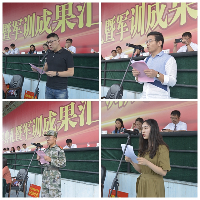 王冬宣读军训表彰决定。校领导为军训先进连排、军训先进个人、优秀带队教师、优秀军训教官颁发奖状。王仁雷代表我校向承担施训任务的部队赠送锦旗。