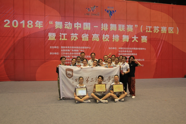 9月27日至30日,2018年“舞动中国-排舞联赛”(江苏赛区)暨江苏省高校排舞大赛在扬州举行。我校获五项冠军:普通院校组单人国际规定中级冠军、单人国际规定高级冠军、小集体规定曲目冠军、小集体自选曲目冠军以及小集体初级串烧曲目冠军。