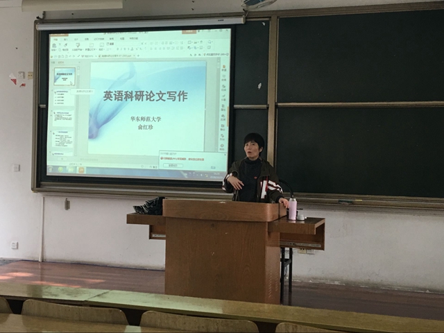 为提高英语(师范)专业毕业生学位论文写作质量,保证毕业生高效优质地完成论文写作,10月19日下午,外国语学院在紫金校区109教室举行学位论文写作指导讲座,邀请华东师范大学俞红珍教授来校为2019届英语(师范)专业全体学生作讲座。