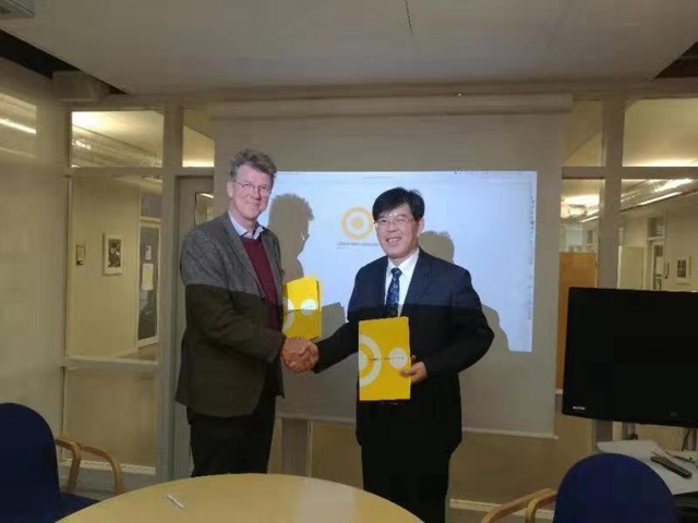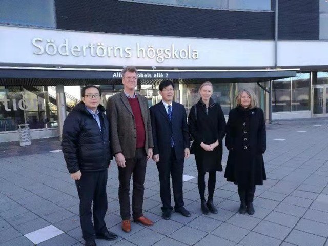 10月24日访问瑞典索德托恩大学。代表团与该校副校长 Gustav Amberg,副校长特别助理Michael Forsman,欧洲科学院院士、传媒艺术学院院长Göran Bolin,教师培训学院院长Anders J Persson等进行了会谈。双方介绍了各自学校近年来的建设情况和未来的发展规划,共同探讨了关于教师的教育与培训、传媒专业的学生互换与教师互访、在南京建立院士工作室(人工智能加教育方向)等内容。王仁雷与Gustav Amberg共同签署了在南京建立院士工作站的合作备忘录。