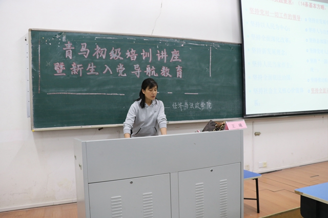11月1日中午,经济与法政学院举行18级新生入党导航教育,该院党总支书记王曦主讲。