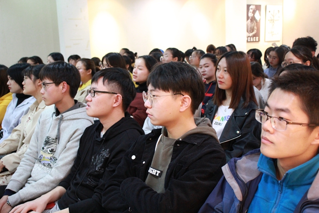 章晨向大家介绍了湖田瓷社的发展概况,以风趣诙谐的言语展示了自己爱陶瓷、学陶瓷、制陶瓷的过程,又以图文并茂的方式展现了他创作作品的艺术空间、湖田瓷社的古陶瓷陈列馆以及青花瓷片的标本等藏品,带领同学们感受了陶瓷的魅力。随后,他向同学们展示了陶瓷艺术品的图像资料,包括几何印纹硬陶双系壶、原始青瓷豆、原始青瓷双系盘口壶、长沙窑青釉褐彩动物捏塑等,配以有趣的故事和他亲身经历对图片进行了一一详细的讲解,丰富了同学们对陶瓷的认知,扩宽了同学们的视野。最后,章晨送给同学们四个词、十六个字:“文明趋同、文化求异、格物致知、文化先行。” 本次分享会在大家的热烈的掌声中圆满结束。