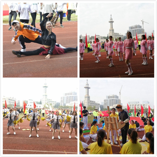开幕式上,在昂扬雄浑的运动员进行曲中,校旗队、校徽队、红旗队、鲜花队精神饱满、气宇轩昂地走过主席台。各学院学生方阵在主席台前进行了精彩的表演,彰显了学科特色,展现了多才多艺、积极向上的精神面貌。