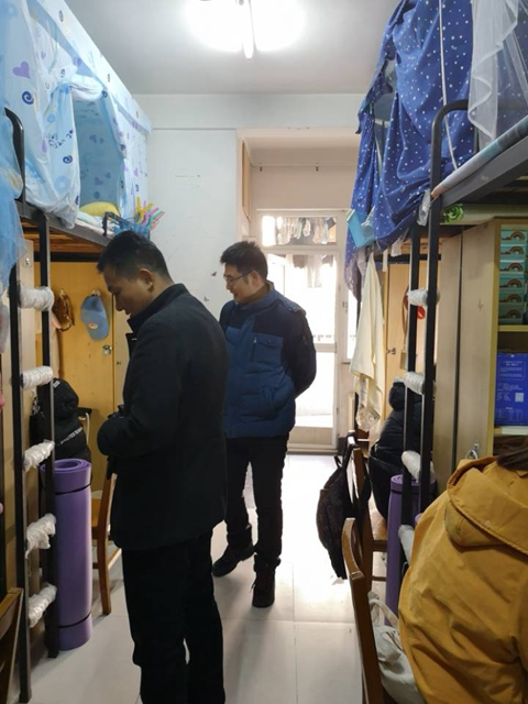 为开展全国文明城市测评高等院校实地检查工作以及我校文明宿舍评选工作,迎接院新一届党代会的召开, 12月12日至13日,学工处会同保卫处、后勤处、资产经营总公司对三个校区的学生宿舍和紫金宿舍区进行了安全卫生大检查。