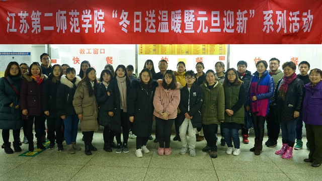 岁岁寒冬至,温情暖人心。为了营造和谐友爱的校园氛围,让学生感受到学校的温暖,临近寒假,12月开始,学生工作处上下齐动员,陆续在三个校区开展“冬日送温暖暨元旦迎新”活动。党委副书记、副校长刘继红,校关工委常务副主任周成平,学工处处长刘莹、副处长眭春良、宋学军,离退休处副处长路秦茜,学工处学生资助管理科科长陆静元以及教师代表及部分受助学生代表参加本次系列活动。