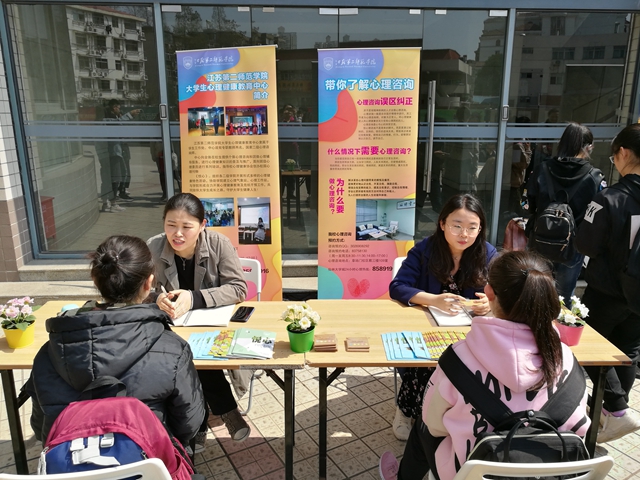3月19日中午,大学生心理健康教育中心在草场门校区开展广场科普宣传、咨询活动,数百名学生参与活动。
