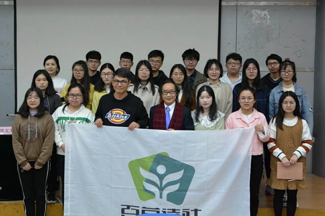 讲座结束后,陈义海教授题字赠送了自己的诗集并与“百草诗社”的同学们合影留念。