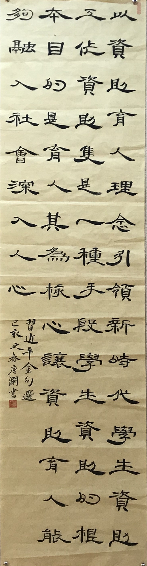 4月10号下午,学工处对本次获奖作品进行了展览,将中华优秀传统文化与资助育人结合起来,让学生在领悟汉字书法艺术奥妙的同时,切身感受到国家资助的温暖。