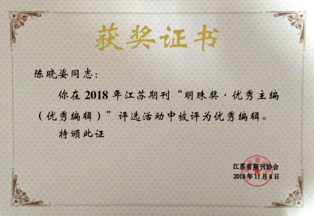 据悉,“明珠奖”是由江苏省期刊协会主办的两年一次在全省期刊范围进行的评奖活动,参评范围广,评选标准严格。