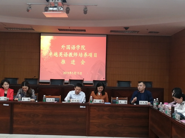 5月15日下午,外国语学院举办卓越英语教师培养项目推进会。协同培养基地的领导和专家,我校教务处副处长薛瑞东,外院党总支书记、院长张莉,全体校内指导老师和学生代表共约50人参加会议。会议由英语(师范)专业基础课教研室主任郭大光主持。