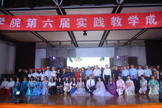 大会在外教和学生联袂的全英文主持下,紧紧围绕该院高素质、应用型、国际化外语专门人才的目标定位和工作重心,以“Flying Youth,Flying Dream”为主题,通过内容丰富精彩、形式活泼多样的节目,向与会观众全面展示了该院实践育人工作成果和理念。多国语言合唱《Let it Go》、日语短剧和俄语诗朗诵汇集了中、英、日、法、德、俄六种语言,充分展示了学院兼收并蓄的外语文化和学子广博深厚的语言素养;英语课本剧《A Happy Day》和书乐舞等节目全方位展示了该院英语(师范)专业学生良好的综合素质和厚实的英语学科教学能力,也进一步聚焦了学院改革教师教育模式所取得的阶段性成果;卓越教师培养项目展示诠释了学院“职前职后融通、实践贯通全程”的一体化卓越人才培养理念;多国服装秀展示出外院学子对异域文化的领悟能力和表达能力。大会还表彰了本学年实践教学系列活动中涌现出来的优秀师生和优秀班集体,并颁发“自强”奖学金。