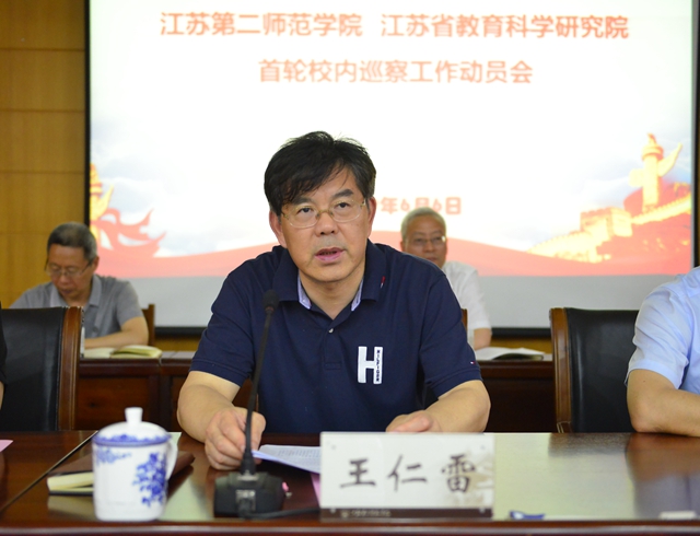 6月6日下午,江苏第二师范学院、江苏省教育科学研究院新一届党委正式启动校内巡察工作,首轮巡察动员会在草场门校区教科研楼511室召开。院党委书记、巡察工作领导小组组长王仁雷出席会议并作动员讲话,院领导刘继红、潘文、王国强、祝兴成、王晓天、姚振标、陈金如、刘贵友出席会议。党委巡察工作领导小组及巡察办成员,各巡察组成员,全体中层干部参加会议。党委副书记、院长王建主持会议。