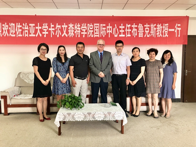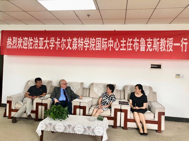 6月11日上午,美国佐治亚大学卡尔文森政府学院主任布鲁克斯教授一行来我校访问。我校副校长刘贵友、国际合作与交流处处长周韵、马克思主义学院院长刘素梅接待了代表团一行。